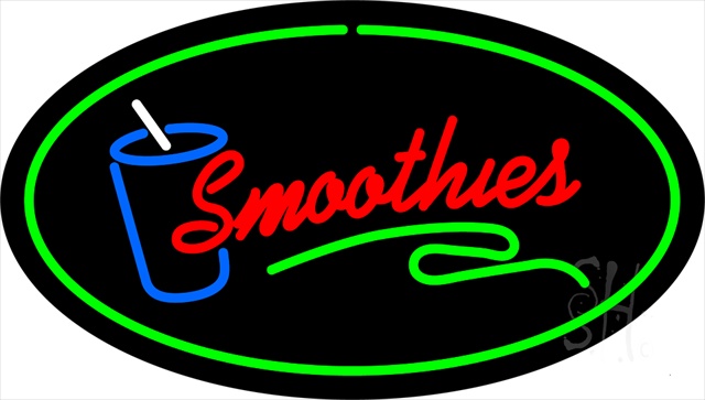 Sign Store N100-1806 Oval Smoothies With Glass Green Border Animated Neon Sign, 30 x 17 x 3 In.
