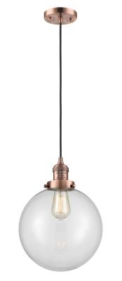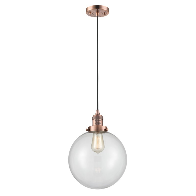 Innovations 201C-AC-G202-10-LED X-Large Beacon 1 Light Mini Pendant Part of The Franklin Restoration Collection, Antique Copper