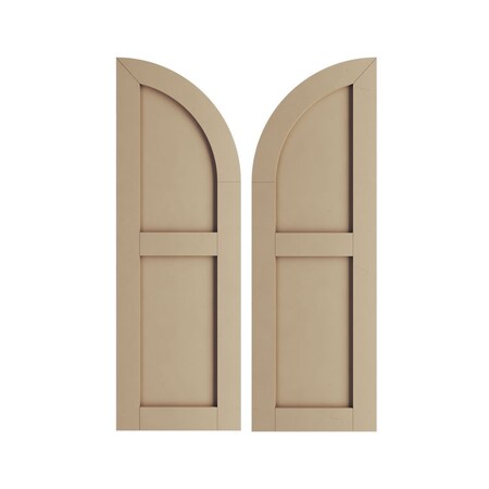 Ekena Millwork 12"W x 74"H (62" Low Side) Timberthane Smooth Two Equal Flat Panel w/Quarter Round Arch Top Faux Wood Shutters (Per Pair), Primed Tan