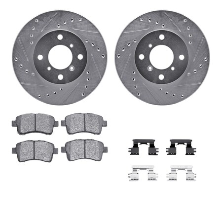 Dynamic Friction Company Front Brake Rotors-Drilled and Slotted-Silver with 5000 Advanced Brake Pads includes Hardware 7512-01002