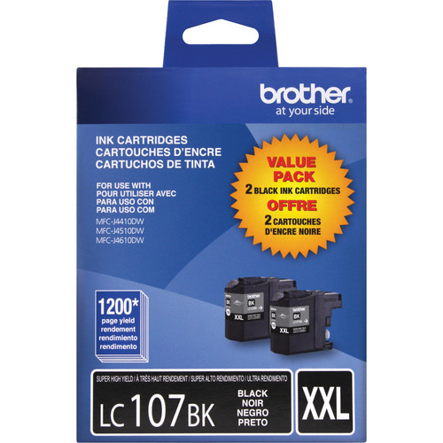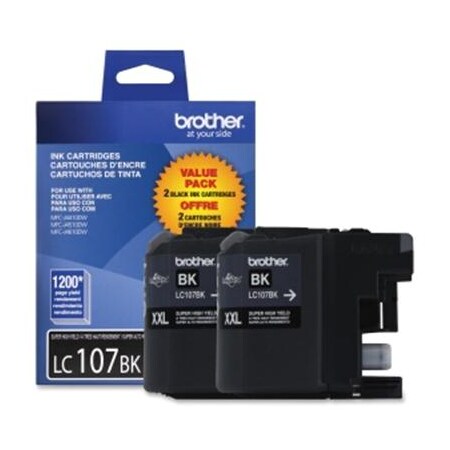 Genuine OEM Brother LC107 (LC1072PKS) Ink Cartridge 2-Pack- Black - 1,200 Yield2