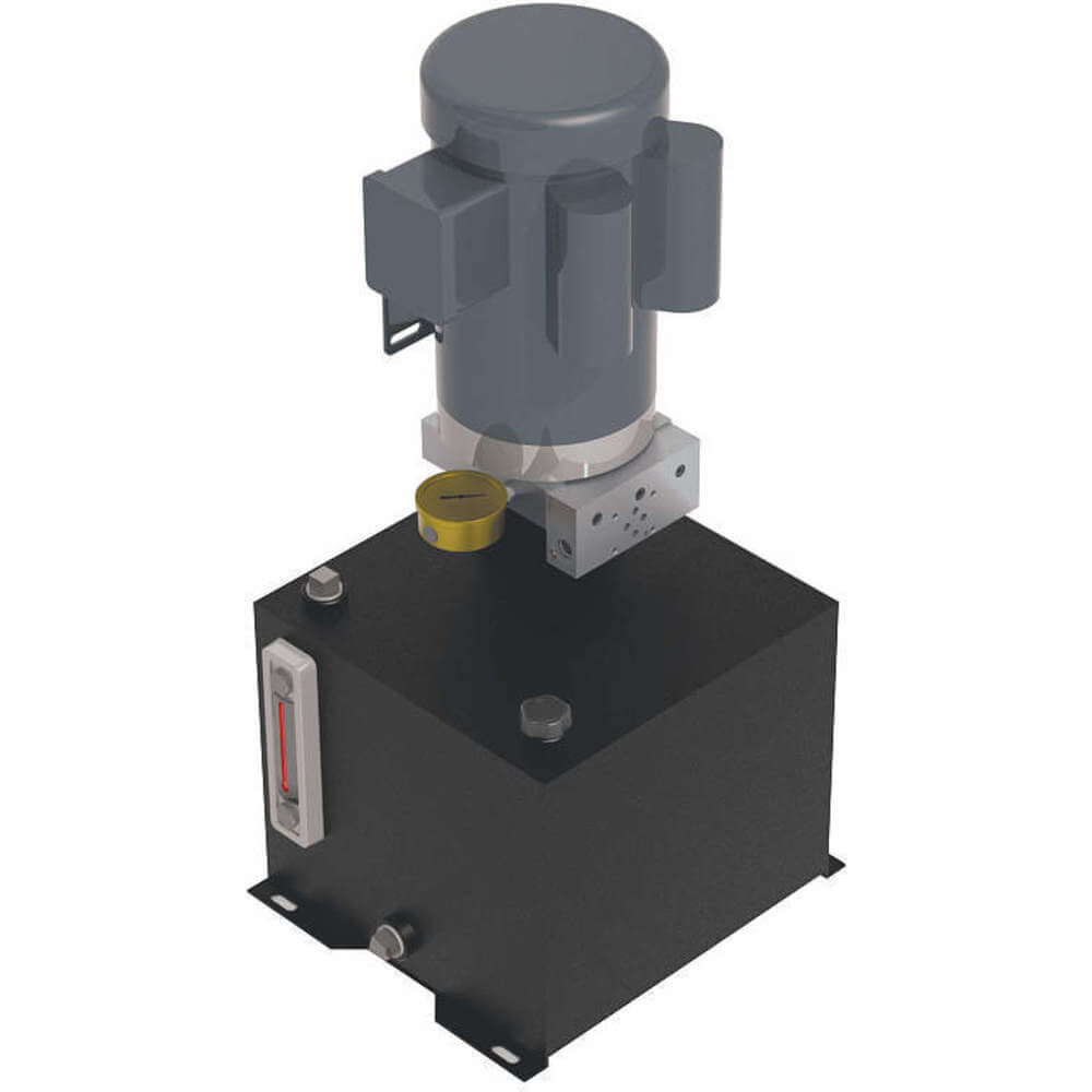 | Feature | <b>Price For:</b> Each <b>Item</b>: Hydraulic Power Unit <b>Number of Stages</b>: 1 <b>Overall Height</b>: 26-31/32" <b>Mounting</b>: Vertical <b>Nominal Flow</b>: 1.4 gpm <b>Manifold Block</b>: D03 <b>Max. Pressure</b>: 2000 psi <b>Hz</b>: 60/50 <b>Return Port</b>: 9/16"-18 (SAE 6) <b>Reservoir Capacity</b>: 5 gal. <b>Phase</b>: 1 <b>Voltage</b>: 115/230VAC <b>HP</b>: 2 <b>RPM</b>: 1800 <b>Full Load Amps</b>: 19.0/9.5A <b>Pressure Port</b>: 9/16"-18 (SAE 6) |