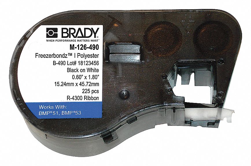 Brady M-126-490 Polyester B-490 Black on White Label Maker Cartridge, 1-51/64" Width x 19/32" Height, For BMP51/BMP53 Printers