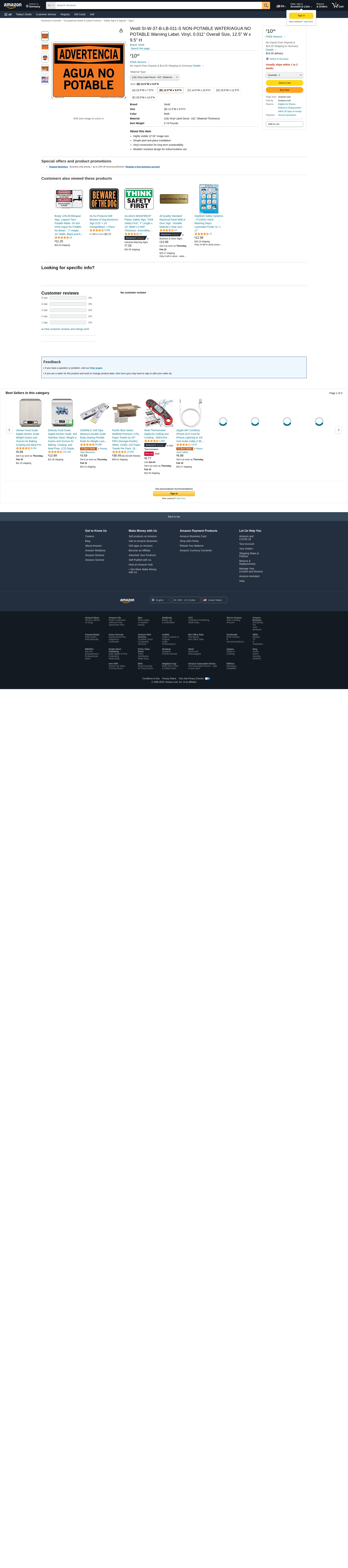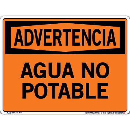 Vestil SI-W-37-B-LB-011-S NON-POTABLE WATER/AGUA NO POTABLE Warning Label, Vinyl, 0.011" Overall Size, 12.5" W x 9.5" H