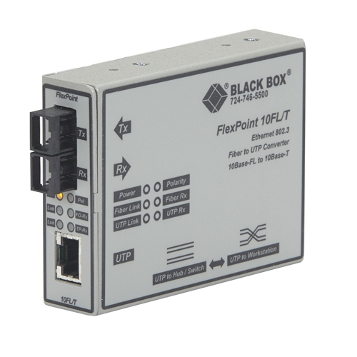 Black Box FlexPoint Modular Media Converter, 10BASE-T to 10BASE-FL, Multimode 850-nm, SC, 2 km