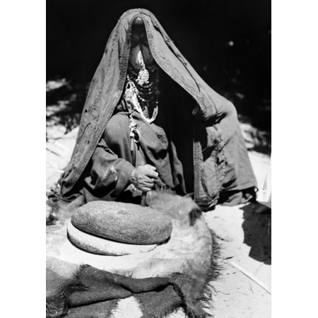 Stretched Canvas Art - Egypt: Bedouin Woman. /Na Bedouin Woman Grinding Flour In Sinai, Egypt. Photograph, Early Or Mid 20Th Century. - Large 24 x 36 inch Wall Art Decor Size.