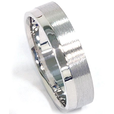 - 14k White Gold : This unique men's wedding band features a brushed and bright polished finish. The inside edge is rounded for comfortable wear. 14k