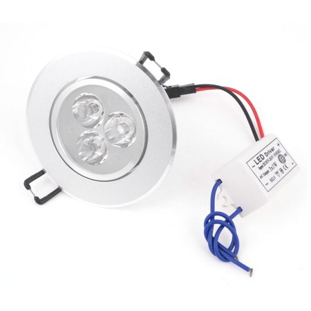 <li>Product Name : Down Light;LED Number : 3;Light Color : Warm White</li> <li>Main Material : Aluminium,PMMA, Plastic, Metal;Color Temperature : 3000-3200K;Power : 3W</li> <li>Input Voltage : AC85-265V;Main Color : Silver Tone;Top Diameter : 85mm/ 3.3"</li> <li>Bottom Diameter : 48mm/ 1.9";Thickness : 50mm/2";LED driver size : 35x 25x 23mm/1.4" x 1" x 0.9"(L*W*H)</li> <li>Cable length : 30cm/11.8";Net Weight : 113g;Package Content : 1 x LED Down Llight</li>
