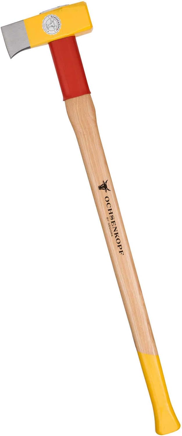 Built for power and efficiency, this wood splitter's patented Rotband-Plus design incorporates a protective steel sleeve, tapered collar, fixing plate, and wood screw to securely bond the head and handle together to ensure maximum work safety. The forged hammer head features a turning nose and extra-large striking face for driving wedges. 6.6 lb. Head. 2.8" Blade. The 35.4" high-quality hickory handle is rounded at the end for extra comfort.