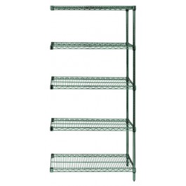 Quantum AD54-3042P-5 Wire Shelving Add-On Kit, 42'W x 30'D x 54'H, 600 lbs Capacity, Carbon Steel, Epoxy Coated, Green, NSF