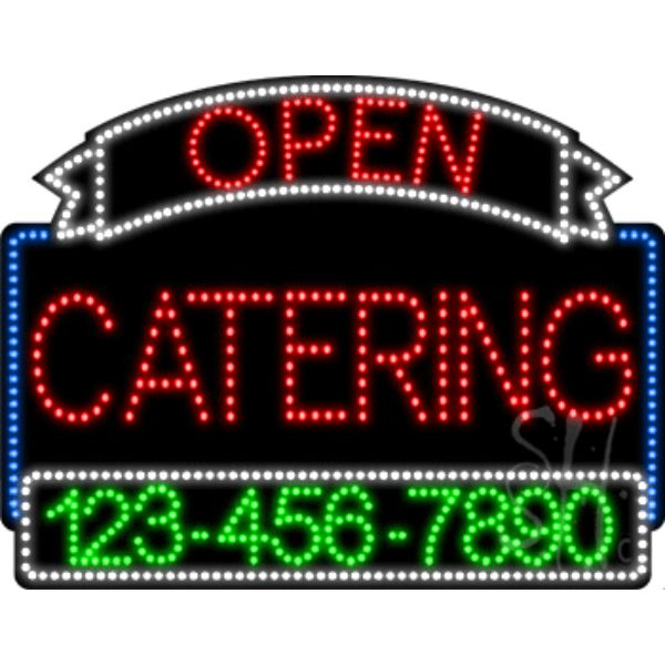 Everything Neon L100-5700 24 x 31 x 1 in. Catering Open with Phone Number Animated LED Sign - Red, White & Blue