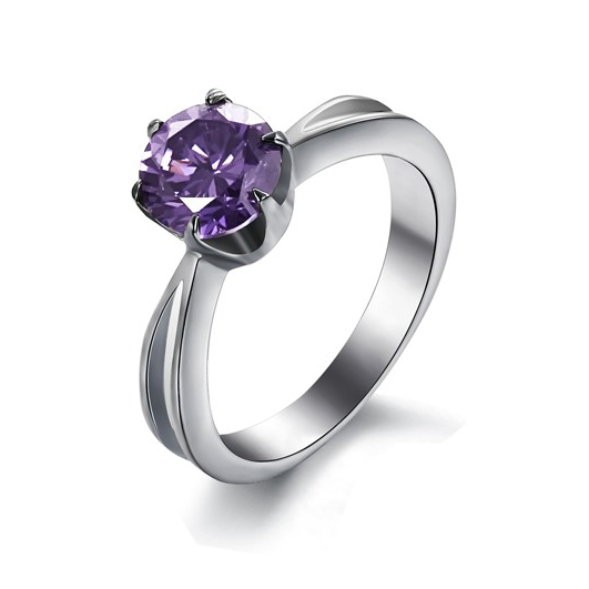 CET Domain SZ17-R146-5 Titanium Steel Purple Cubic Zirconia Crystal Ring-Size 5