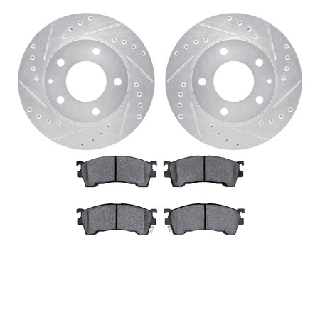 Dynamic Friction Company Front Brake Rotors-Drilled and Slotted-Silver with 3000 Series Ceramic Brake Pads 7302-80043