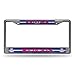 - Trust; it's not a word used lightly these days. Over the last 75 years, Rico Industries has earned an unparalleled reputation for trust and integrity among it's customers. Our Bling Chrome License Plate Frame with Glitter Accent makes a big impact with it's glitter decal insert team name plate and color team logos. The light will radiate from the center of the insert to the edges, catching the eyes of all passerbys. Fits all standard license plates, measure 6" x 12.25". Pre-drilled holes make this piece easy to hang to your vehicle and is sure to add some more excitement to your drive.