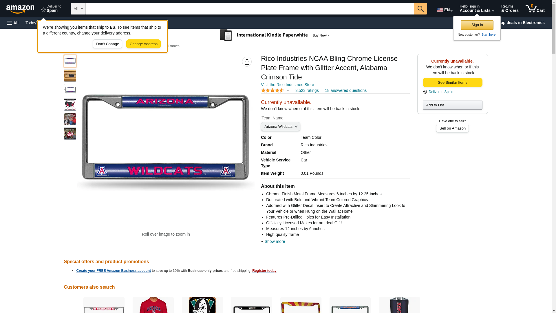 Rico Industries NCAA Arizona Wildcats Classic Bling License Plate Chrome Frame 12" x 6"