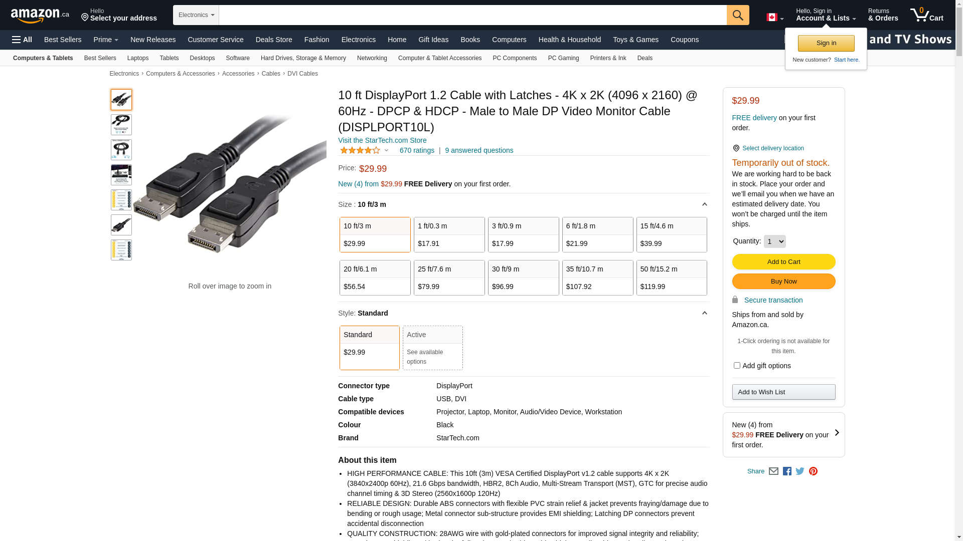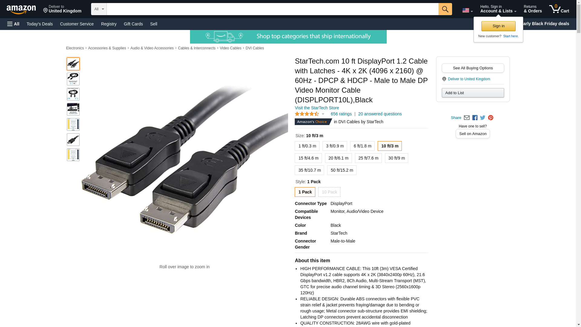 | Feature | Startech.com - 10Ft DisplayPort Cable - DISPLPORT1 |