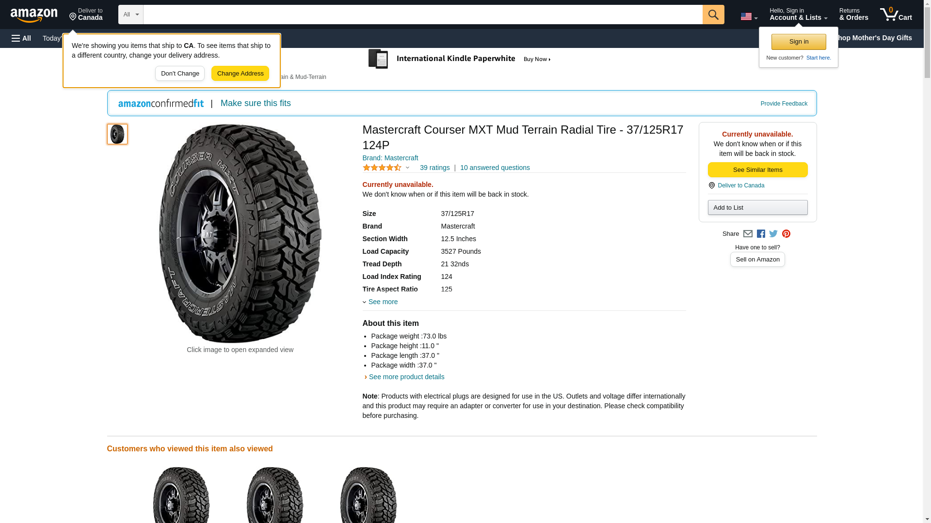 Attention! Due to the size of the tires, Packages might be SEPARATED in the courier facility and not be DELIVERED on the SAME DAY, even though we do ship them together. All tracking information can be checked on courier's website </br></br> Mastercraft Courser MXT<br /><br />The Mastercraft Courser MXT is a mud terrain all season tire manufactured for light trucks. The tread design enhances the dry, wet and winter weather road gripping ability, while also maintaining a clean footprint to ensure constant traction. The individual tread elements boost the soft and loose terrain traction to promote a safer off-road performance. The maintained contact manages to increase the steering responsiveness and driving stability. The stronger tire compound and even pressure distribution avoid irregular tread wear formations. The Courser MXT actively resists damages that may hurt the tire’s casing. <br /><br />Features<br /><br />Mud Terrain Tire – The aggressive tread design with the high void ratio and large blocks and the side-biters increase the soft and loose terrain traction.</br>Self-cleaning Tread – The high void ratio, staggered blocks and stone ejectors eliminate mud, snow and rocks from between the tread elements.</br>All Season Tire – The tread pattern’s variable depth siping enhances the dry, wet and winter weather road gripping capability.</br>Handling – The center tread area’s blocks keep the tire’s road contact at all times, improving the steering and driving stability.</br>Damage Resistance – The upper sidewall design prevents damages, such as punctures, cuts and abrasions, from harming the tire’s casing.</br>Longer Tread Life – The stronger compound and the evenly spread out forces enhance the tread life by preventing irregular tread wear formations.