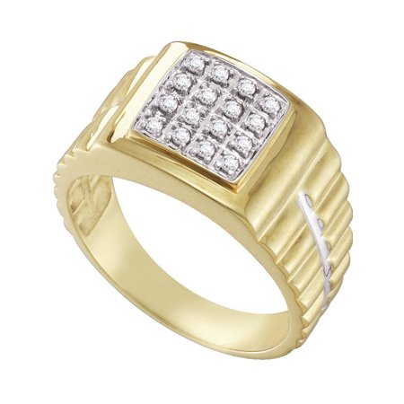 10kt Yellow Gold Mens Round Diamond Square 2-tone Cluster Ring 1/4 Cttw
