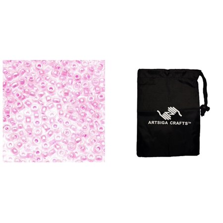 Bundle includes Darice Beads Glass Inside Color Seed Beads Luster Pink 10/0 (6 Pack) 1101 82 and 1 Artsiga Crafts Small Bag. Price includes 6 pack(s) per order, with 20 grams per pack. Artsiga Crafts bag measures approximanetly 6 x 8in., made of heavy nylon material and includes a drawstring closure; this bag is deal to store small craft items or cell phones and accessories.