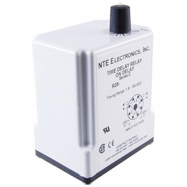 NTE Electronics R28-11D10-24K Series R28 Adjustable Delay on Operate Time Delay Relay, DC Operated, DPDT, 0.1 to 10 Second Range, 10 Amp, 8 Pin, 24VDC