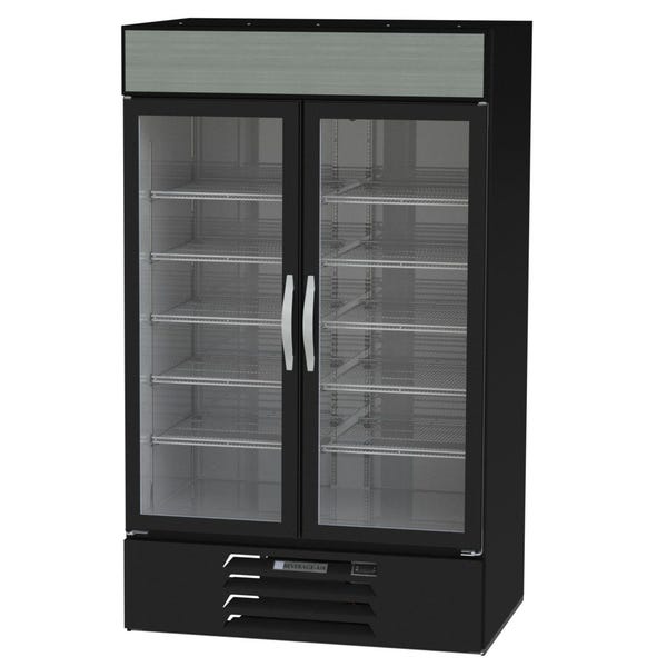 Beverage-Air MMR44HC-1-B 2-Swing Glass Door Black Merchandiser Refrigerator | 40.2 Cu. Ft. MarketMax™ Refrigerated Merchandiser, reach-in, two-section, (2) double pane hinged glass doors, 40.2 cu. ft. capacity, electronic control, digital display