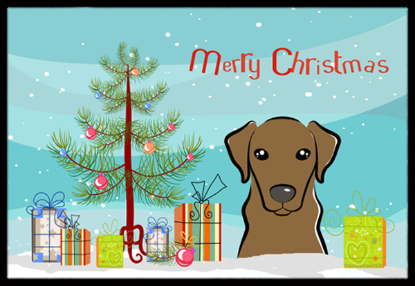 Caroline's Treasures BB1606JMAT Christmas Tree and Chocolate Labrador Doormat 24x36 Front Door Mat Indoor Outdoor Rugs for Entryway, Non Slip Washable Low Pile, 24H X 36W