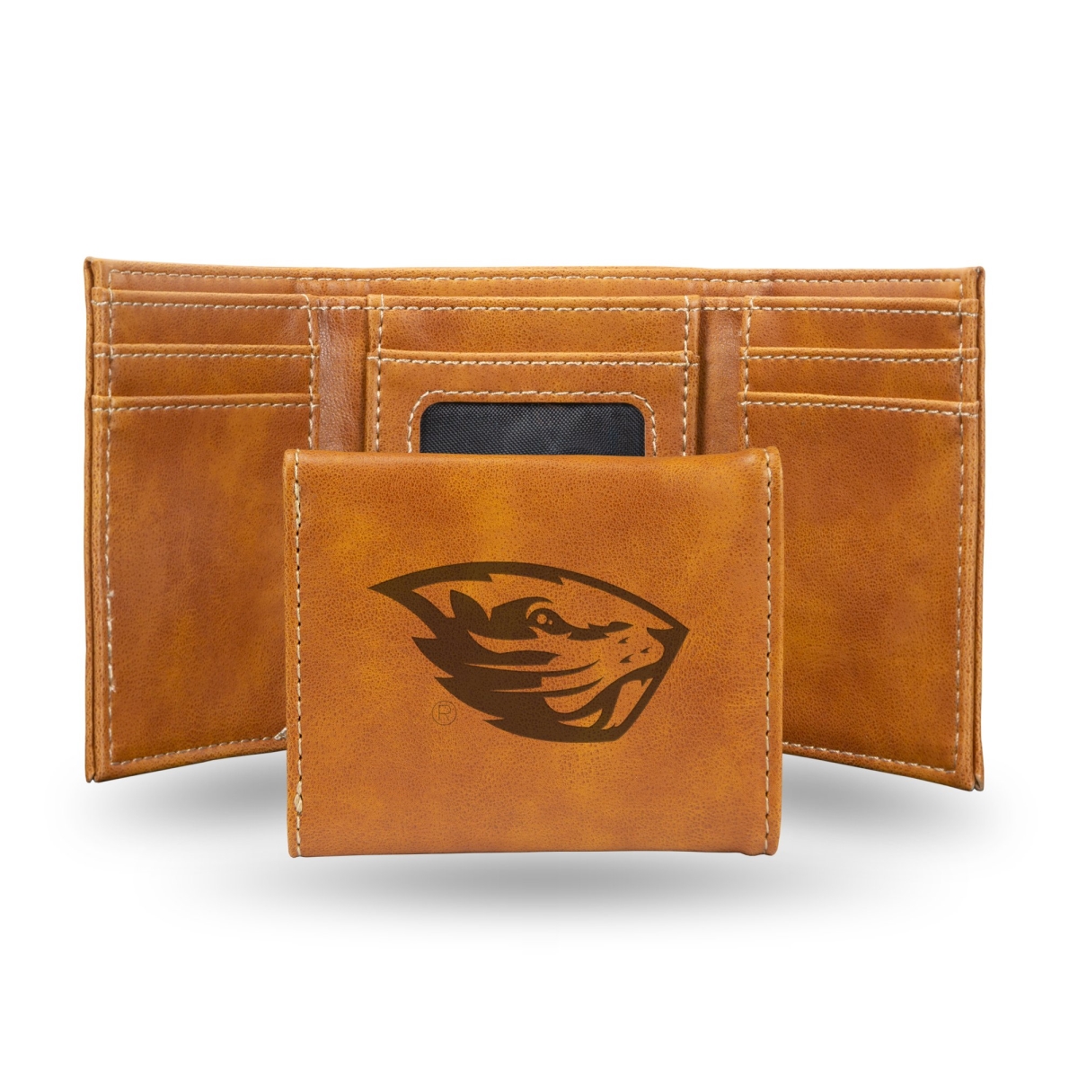 Rico LETRI510301BR NCAA Oregon State Beavers Laser Engraved Brown Trifold Wallet