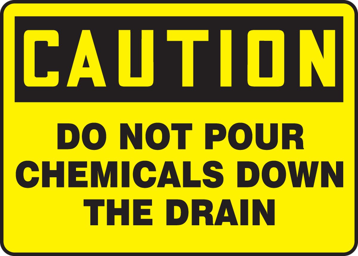 7" x 10" Plastic OSHA Sign: "Do Not Pour Chemicals Down The Drain" Prevent hazardous chemicals from entering the water cycle through drainage systems. Plastic (VP) Plastic combines standard, reliable performance with 92% recycled content to create a dependable, Earth-friendly material solution. Semi-flexible, impact-resistant plastic signs are ideal for standard-duty use - for installation indoors and for protected, short-term outdoor applications. Get the look, feel and characteristics of non-recycled plastic signs in an environmentally friendly version.