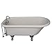 Polished Chrome Acrylic Oval Clawfoot Bathtub with Back Center Drain (Common: 30-in x 60-in; Actual: 24.5-in x 30-in x 60-in) Kit includes 60-in L x 30-in W double acrylic tub, tub filler, bath supplies and tub drain Tub exterior is painted bisque over smooth acrylic Roll top tub has 3-3/8-in centers in tub wall Tub has 40 gallon capacity All coordinating kit items and the ball and claw feet are polished chrome Elegant tub filler has graceful gooseneck spout Intricate metal lever handles are 1/4 turn Double offset bath supplies are 24-in high Tub drain has twist and lift stopper