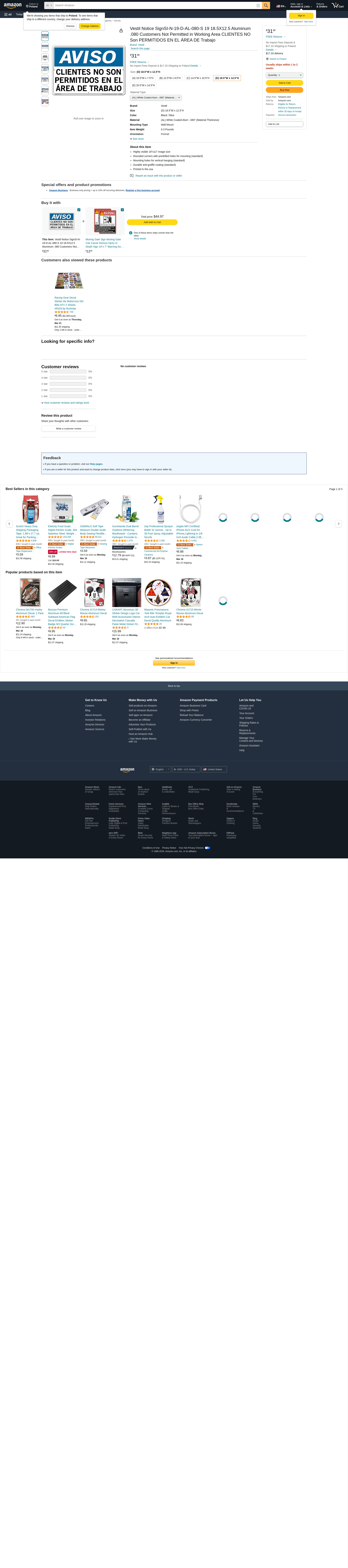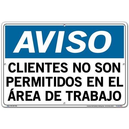 Vestil Notice SignSI-N-19-D-AL-080-S 19 18.5X12.5 Aluminum .080 Customers Not Permitted in Working Area CLIENTES NO Son PERMITIDOS EN EL ÁREA DE Trabajo