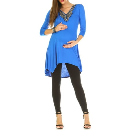 <ul> <li>White Mark Women's Maternity Embellished Tunic Top - Extended Sizes Avaliable</li> <li>95% Rayon/5% Spandex</li> <li>Maternity Wear</li> <li>Hig Low Hem</li> <li>3/4 Sleeves</li> <li>Embellised Neckline</li> <li>Sizes S to 3XL</li> </ul><p>Country of Origin: Imported