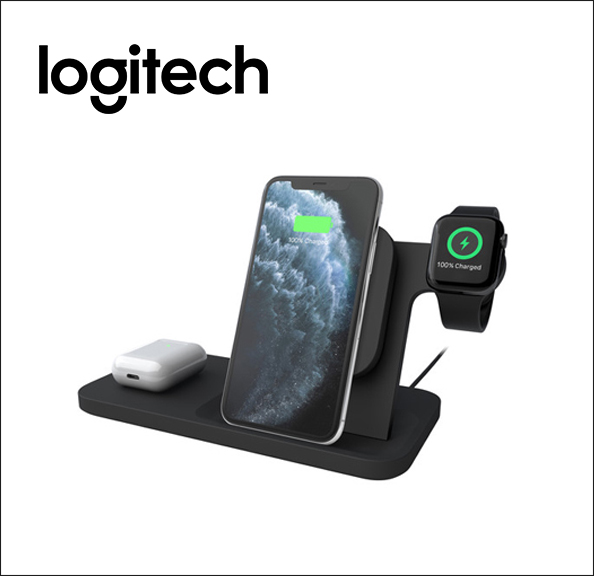 Logitech Powered 3-in-1 Qi Wireless Charging Dock (Graphite) for Apple iPhone 8
