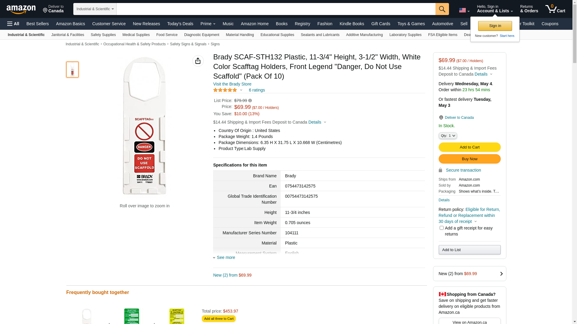 | Feature | Price For: Each Standards: ANSI Z53.1-1967; ANSI Z535-2006; OSHA 1910.145 Legend: Do Not Use Scaffold Width: 3-1/2" Material: Plastic Item: Danger Tag Height: 11-3/4" Tag Subject: Scaffolding Legend/Background Color: Black, Red/White Country of Origin (subject to change): United States |