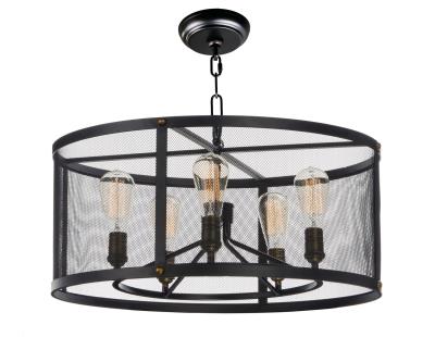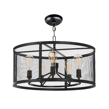 Maxim 20115BKNAB Palladium Industrial Metal Mesh Drum Chandelier, 5-Light 300 Total Watts, 11"H x 24"W, Black/Natural Aged Brass