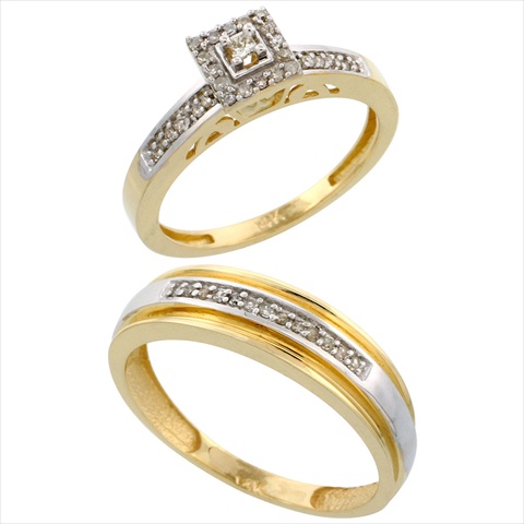 World Jewels 10K Gold .25 ct. Brilliant Cut Diamond Engagement & Mans Wedding Band Set, Size 10