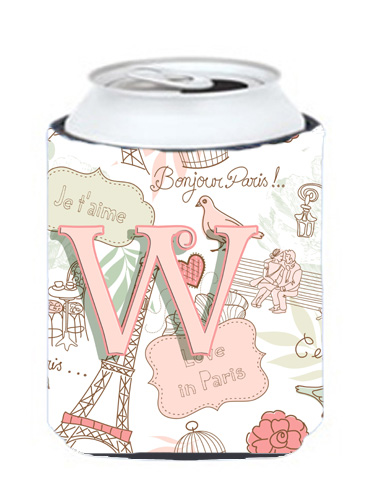 Carolines Treasures CJ2002-WCC Letter W Love In Paris Pink Can & Bottle Hugger