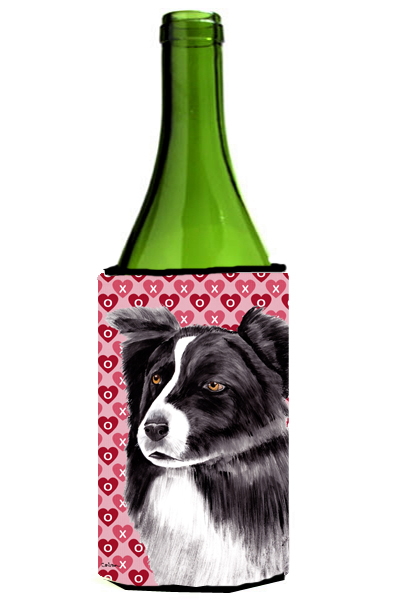 Carolines Treasures SC9272LITERK Border Collie Hearts Love Valentines Day Portrait Wine bottle sleeve Hugger 24 oz.