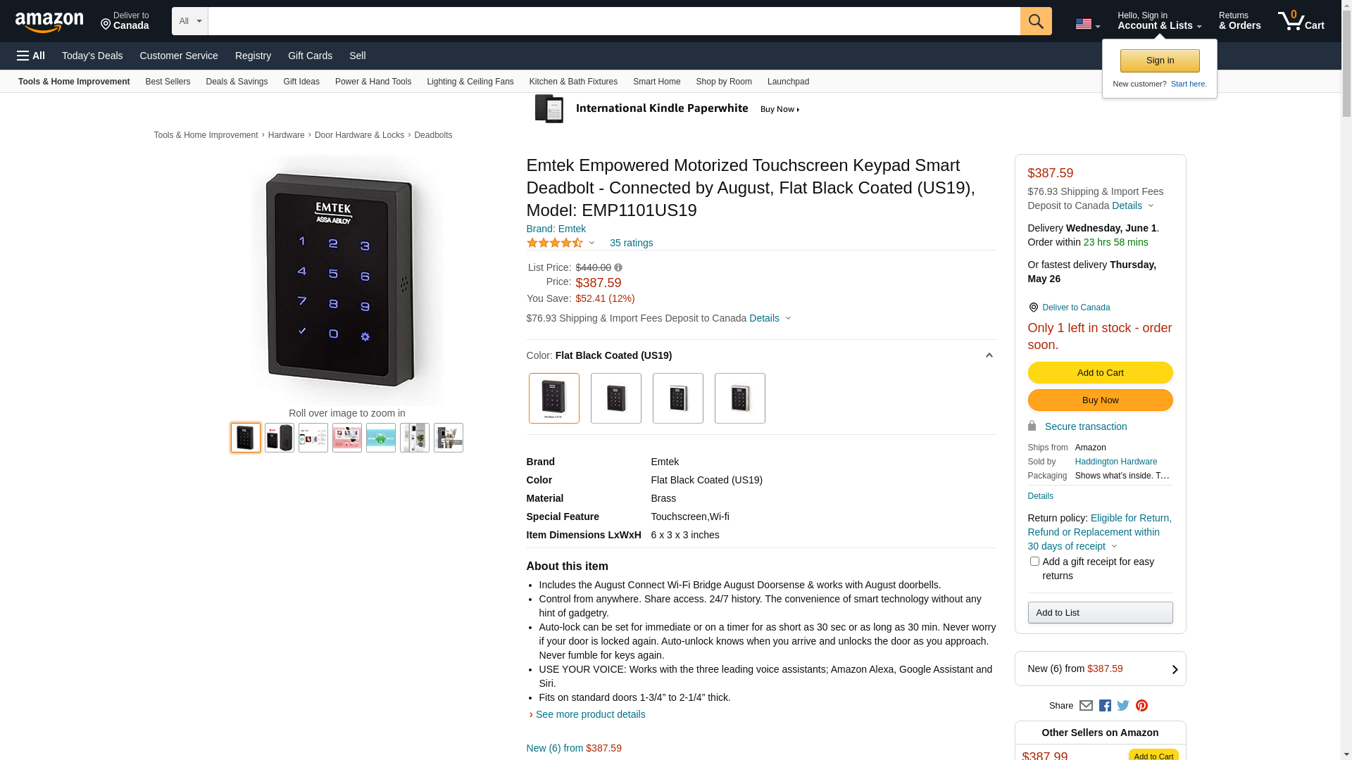 <b>Emtek is known for its long-lasting quality of solid brass hardware products in the USA for many decades. <br><br> Emtek is here to match all your hardware styles from traditional to contemporary, transitional, or rustic. <br><br>FEATURES: <br><br> BACKLIT KEYPAD: </b> Keypad wakes with a touch and includes numbers that won’t wear off. <br><b>OPTIONAL SETTINGS: </b>Customized auto re-lock, privacy mode and tamper alarms with the lock settings. <br><b>MOTORIZED DEADBOLT: </b>Quiet motor with tapered deadbolt to accommodate misaligned doors. <br><b>SIMPLE INSTALLATION: </b> Replaces existing deadbolt with just a screwdriver. Fits on standard doors 1-3/4” to 2-1/4” thick with a standard 2-1/8” face bore door prep. <br><b> WEATHER PROTECTED: </b> Rubber gasket increases protection against outdoor environments. <br><br><b> COLOR: Flat Black Coated (US19). <br><br><b>SMART:</b><br>• Create and manage unlimited entry codes with the smart lock. <br>• Easy to use, award-winning August mobile app. <br>• AUTO-UNLOCK FUNCTION - HOME MODE & AWAY MODE: Auto-Unlock when approaching door to leave and when arriving back home (about 200 meters). <br>• Works with all 3 voice assistants and compatible with leading smart home security systems and hosting platforms. <br>• Connect by August SMART bundle includes: Pre-Installed Connected by August module, August Connect Wi-Fi Bridge, and DoorSense. <br>• Download the BILT app for easy step-by-step 3D instructions. <br>• 9V battery port to prevent lockouts. <br>• MONITORING GUEST ACCESS TOTAL CONTROL STATUS UPDATES. <br><br><b>PACKAGE INCLUDES:</b> Battery Cover Interior Escutcheon Mounting Plate Strike Plate Security Plate Deadbolt Latch 2-3/4” Deadbolt Latch 2-3/8” August Connect August Door Sense AA x4 Batteries x3 #8-32 x 5/16” Machine Screws x4 #8 x 3/4” Wood Screws x2 #10-32 x 1-3/8” Machine Screws /x2 #10 x 3” Wood Screws.