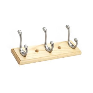- Enhance your space with this combination of natural wood and brushed nickel hooks