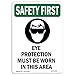 OSHA SAFETY FIRST Sign, Eye Protection Must W/ Symbol, 24in X 18in Decal