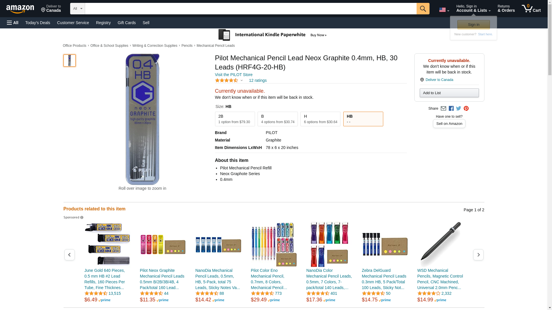 Pilot Mechanical Pencil Lead Neox Graphite 0.4mm, HB, 30 Leads (HRF4G-20-HB). Pilot Mechanical Pencil Refill. Neox Gr...