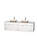 Wyndham Collection 80" Double Bathroom Vanity in White, White Carrera Marble Countertop, Avalon Ivory Marble Sinks, and No Mirror
