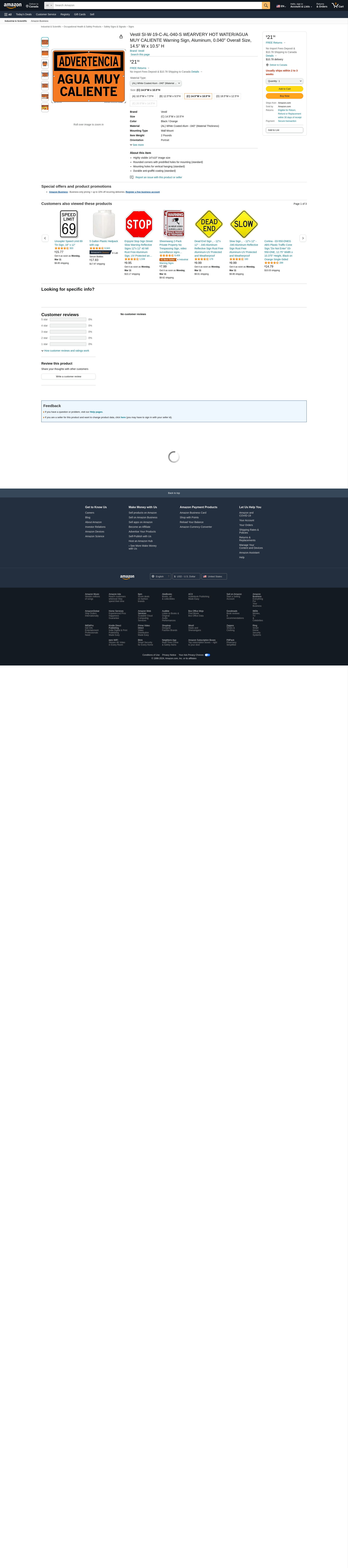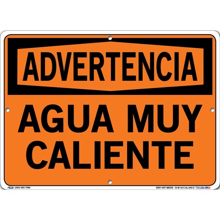 Vestil SI-W-19-C-AL-040-S WEARVERY HOT WATER/AGUA MUY CALIENTE Warning Sign, Aluminum, 0.040" Overall Size, 14.5" W x 10.5" H