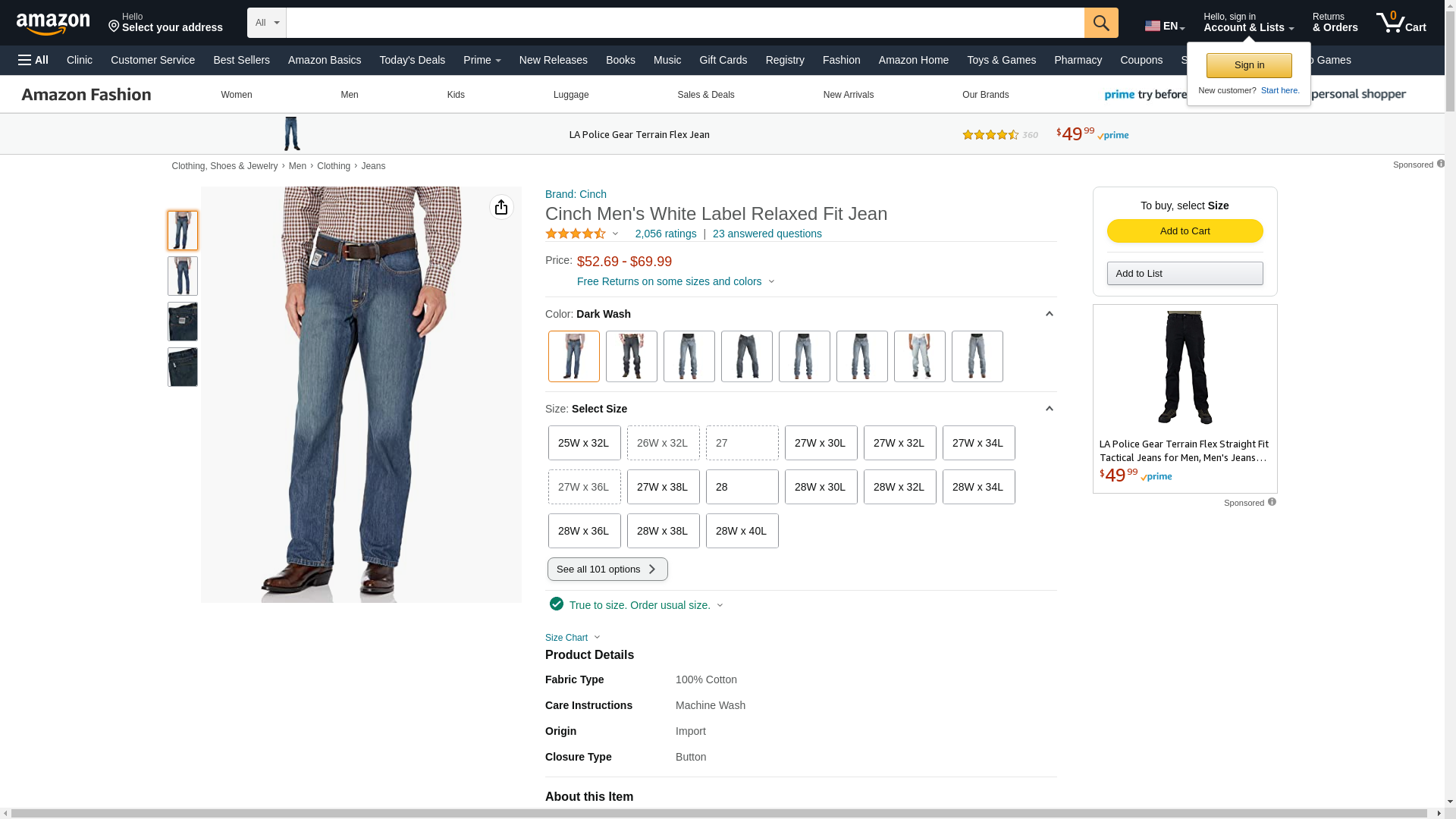 | Manufacturer | "Cinch Men's Jeans" |