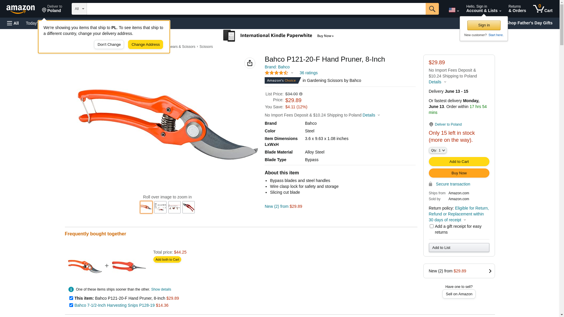 BAHCO NORTH AMERICA P121-20-F - Pruner, Tradional W/ Contoured Steel Handles, 8 X 3/4""