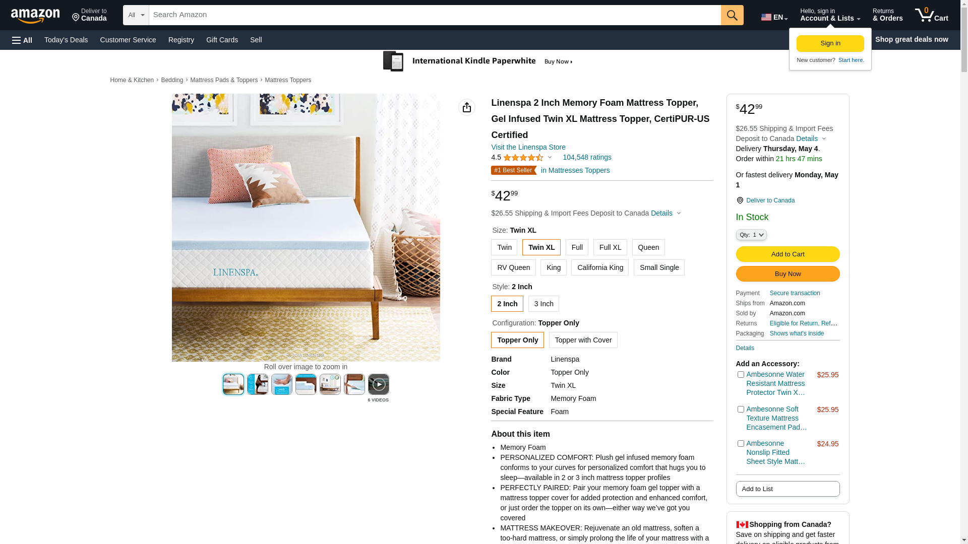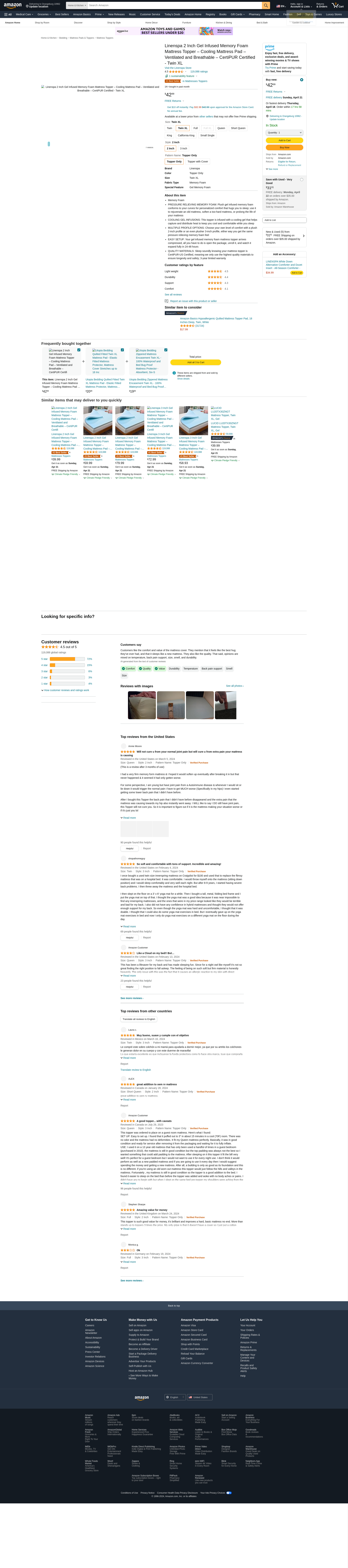 Linenspa 2 Inch Memory Foam Mattress Topper, Gel Infused Twin XL Mattress Topper, CertiPUR-US Certified, Dorm Room Essentials