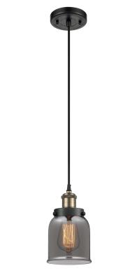 INNOVATIONS LIGHTING 916-1P-BAB-G53-LED BALLSTON SMALL BELL 1 LIGHT 5 INCH PLATED SMOKE GLASS MINI PENDANT, BLACK...