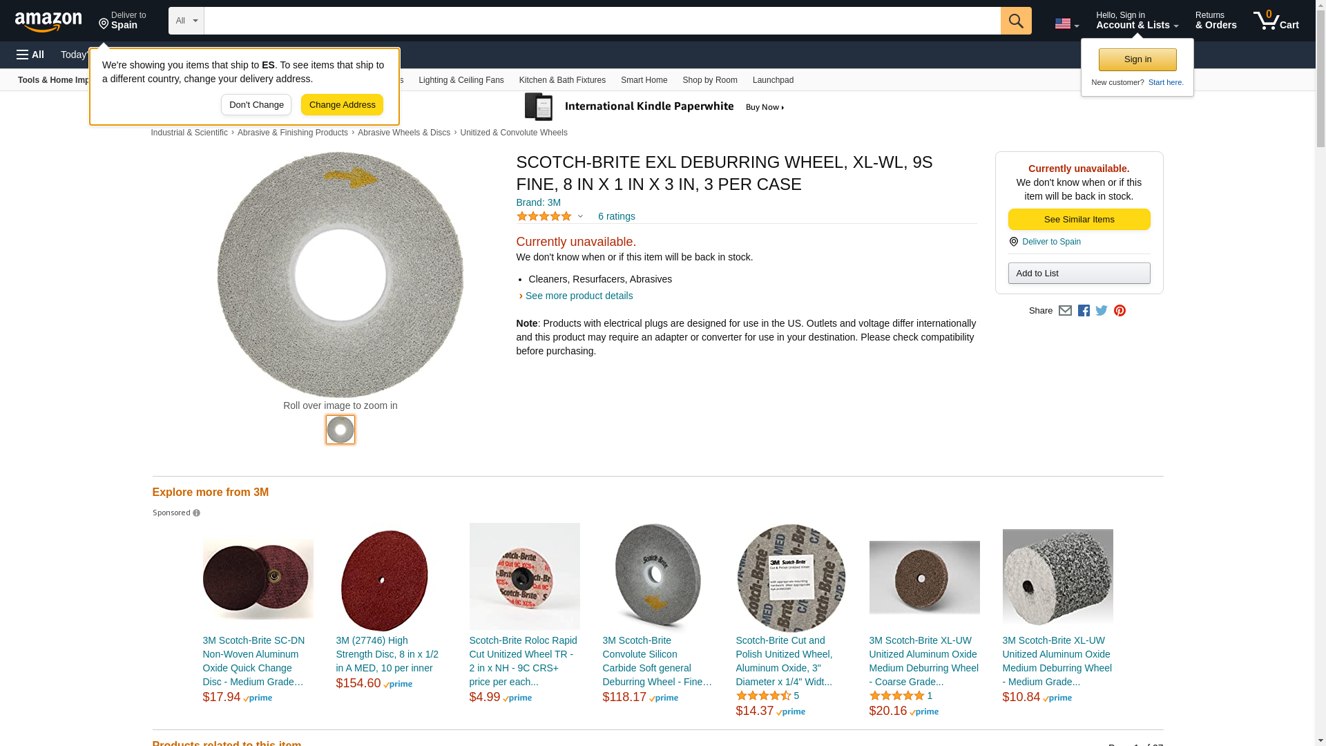 Diameter; 1 Inch Thickness; 3 Inch Mounting Size; 4500 Rpm Speed Rating; Fine Grit; Silicon Carbide Abrasive Material; Scotch-Brite[T] Brand; Density 9; Operations Cleaning, Finishing, Blending, Deburring, Polishing
