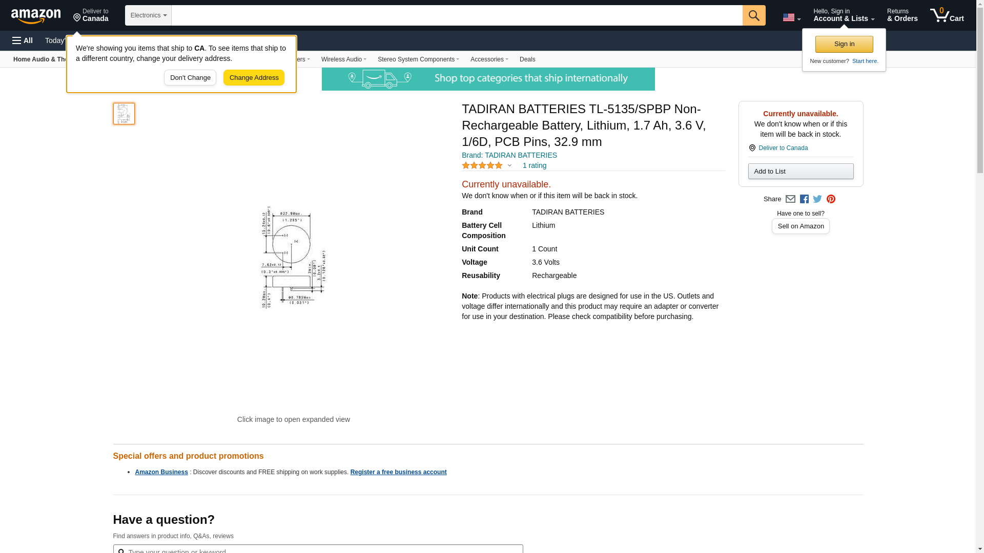 | Manufacturer | TADIRAN BATTERIES |