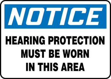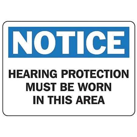 Accuform MPPE855VP Plastic Safety Sign, Notice Hearing Protection Must BE Worn in This Area", 7" Length x 10" Width x 0.055" Thickness, Blue/Black on White